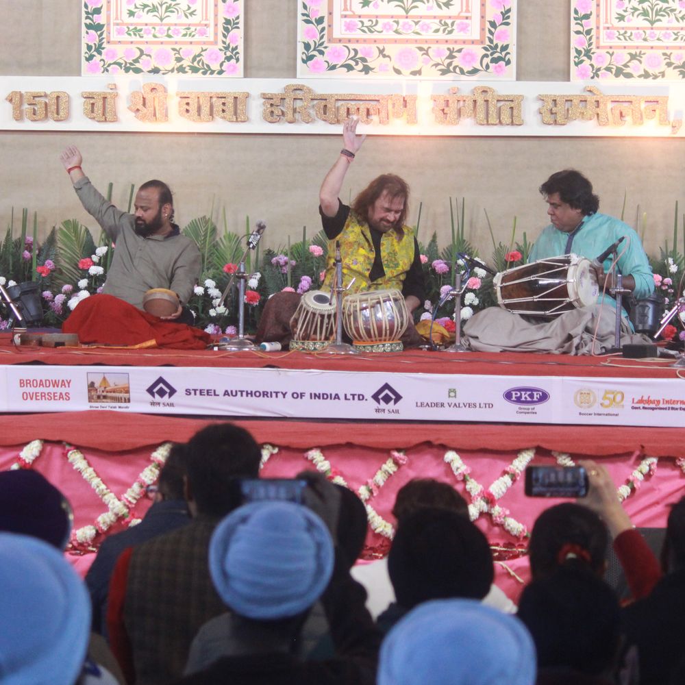 जालंधर | श्री देवी तालाब मंदिर के प्रांगण में श्री बाबा हरिवल्लभ संगीत सम्मेलन में तबलावादक विजय घाटे, खंजीरावादक विद्वान सेलवा गणेश, ढोलक पर नवीन शर्मा और डीजेंबे पर शिखरनाद कुरैशी की संगत का श्रोताओं ने खूब आनंद लिया। उन्होंने राग यमन में भजन प्रस्तुत किया – श्री कृष्ण गोविंद हरे मुरारी…। ये प्रस्तुति इस उत्सव के सबसे यादगार क्षणों में से एक रही। उन्होंने राग यमन के ढांचे के भीतर खंजीरा, ढोलक और डीजेंबे जैसे वाद्यों का उपयोग करके लयकारी का एक ऐसा “कोलाज’ तैयार किया, जिसने शास्त्रीय संगीत की सीमाओं को अंतहीन बना दिया। इस प्रस्तुति में श्रोताओं को अलग-अलग वाद्यों से संगीतक प्रभाव की खास संगति दिखी।