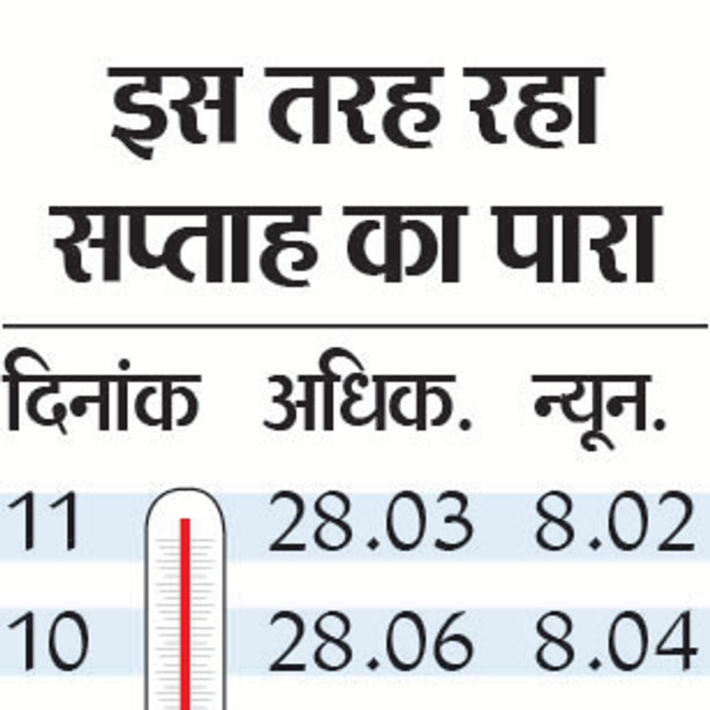 भीलवाड़ा | जिले में सुबह व शाम के समय सर्दी का असर दिख रहा है। शाम ढलने के साथ सर्दी का अहसास हो रहा है। पिछले एम सप्ताह का पारा 8 डिग्री पर ही बना हुआ है। अधिकतम व न्यूनतम तापमान में 20 डिग्री अंतर के चलते मौसमी बीमारी का प्रकोप भी बढ़ रहा है। अस्पताल में सर्दी, जुकाम, खांसी बुखार के मरीजों की भीड़ लग रही है। गुरुवार को अधिकतम तापमान 28.03 डिग्री व न्यूनतम तापमान 8.02 डिग्री रहा, जबकि बुधवार को अधिकतम 28.06 और न्यूनतम 8.04 डिग्री सेल्सियस दर्ज किया गया था। मौसम विशेषज्ञों के अनुसार दिसंबर के दूसरे पखवाड़े से न्यूनतम तापमान के साथ अधिकतम तापमान में भी गिरावट दर्ज की जाएगी।