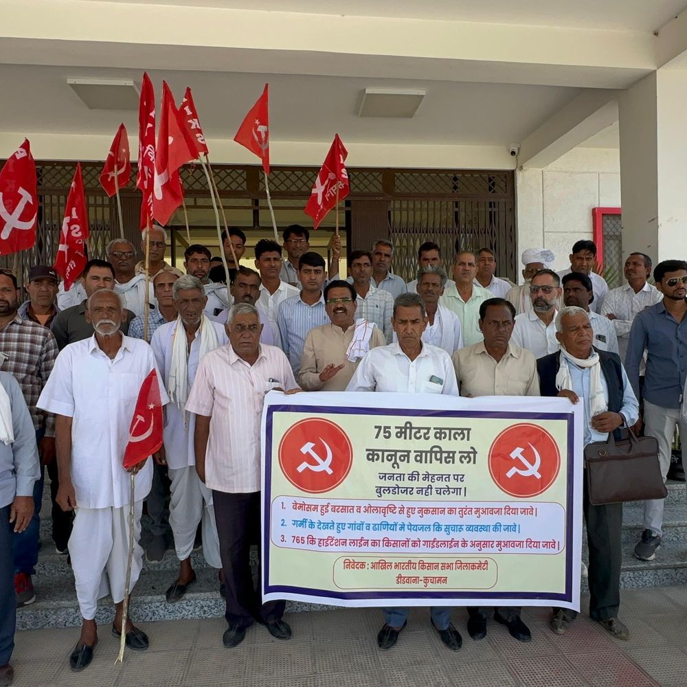 डीडवाना में अखिल भारतीय किसान सभा की डीडवाना-कुचामन जिला कमेटी ने जिला कलेक्टर को ज्ञापन सौंपा। इस ज्ञापन में किसानों और आमजन से जुड़ी विभिन्न समस्याओं के समाधान की मांग की गई, जिसमें पांच प्रमुख मुद्दे उठाए गए हैं। प्रशासन से इन पर शीघ्र कार्रवाई की अपील की गई है। किसान सभा ने सड़क चौड़ीकरण के नाम पर 75 मीटर दायरे में एकतरफा भूमि अधिग्रहण को तुरंत रोकने की मांग की है। इसके अतिरिक्त हाल ही में हुई बेमौसम बारिश और ओलावृष्टि से फसल को हुए नुकसान के लिए किसानों को उचित मुआवजा देने की अपील की गई है। ज्ञापन में ग्रामीण क्षेत्रों में जंगली सूअरों के बढ़ते आतंक पर नियंत्रण के लिए ठोस कदम उठाने की मांग भी शामिल है। गर्मी के मौसम को देखते हुए गांवों और ढाणियों में पेयजल की सुचारू व्यवस्था सुनिश्चित करने का आग्रह भी किया गया है। संगठन ने 765 केवी हाईटेंशन लाइन से प्रभावित किसानों को सरकारी गाइडलाइन के अनुसार उचित मुआवजा दिलाने की मांग भी उठाई है। किसान सभा के पदाधिकारियों ने चेतावनी दी है कि यदि प्रशासन ने इन मांगों पर जल्द सकारात्मक कार्रवाई नहीं की, तो संगठन जन आंदोलन शुरू करेगा। इसकी पूरी जिम्मेदारी प्रशासन की होगी। ज्ञापन सौंपते समय भागीरथ नेतड़ और जगदीश गोदारा सहित संगठन के अध्यक्ष, सचिव, कार्यकर्ता और किसान प्रतिनिधि मौजूद थे।