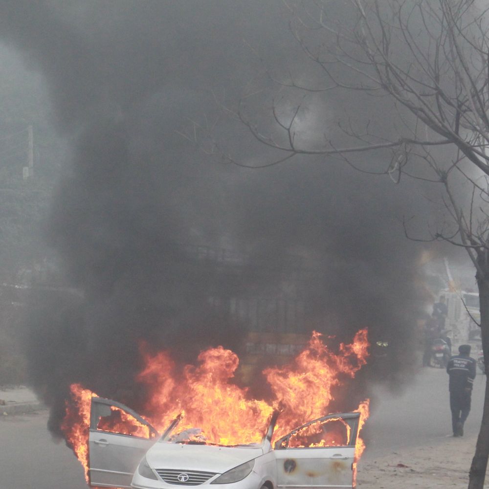 जालंधर| जालंधर- अमृतसर हाईवे स्थित अक्षरधाम के सामने शुक्रवार सुबह चलती कार को अचानक आग लग गई। किसी तरह से कार चालक ने अपनी जान बचाई। स्थानीय लोगों ने फायर ब्रिगेड को सूचित किया। मौके पर पहुंची फायर ब्रिगेड की दो गाड़ियों से आग पर काबू पाया। कार चालक विशाल ने बताया कि कार के अंदर से एक दम से धुआं निकलने लगा और देखते ही देखते आग लग गई। आग लगने के कारणों का पता नहीं चल पाया। आग लगने के कारण कार पूरी तरह से जलकर राख हो गई। बाद में पुलिस मुलाजिमों ने क्रेन मंगवाकर कार को रोड से हटवाया और ट्रैफिक को सुचारु रुप से चालू करवाया। वहीं जानकारी मिली है कि कार में कुछ जरुरी कागजात भी रखे हुए थे।