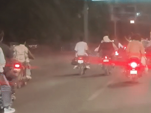 जयपुर में 20 से अधिक बाइक पर 40-50 युवाओं ने काफिला निकालते हुए हाथोंं में तलवारें लहराईं। जयपुर-दिल्ली हाईवे पर गलता गेट क्षेत्र में रविवार रात बाइक सवारों ने दहशत फैलाई। बाइक सवार युवाओं ने हाईवे पर हुड़दंग किया। दहशत फैलाने के लिए चलती बाइक पर तलवारें तक लहराई। इसका वीडियो सामने आने के बाद पुलिस ने दबिश दी। गलता गेट थाना पुलिस ने सोमवार रात 7 आरोपियों को गिरफ्तार किया। मामले में फरार अन्य साथियों की तलाश में दबिश दी जा रही है। पुलिस ने बताया- मामले में आरोपी फरहान (24) निवासी ठाठर कॉलोनी आमेर, असगर अली (33) निवासी प्रभात कॉलोनी गलता गेट, मोहम्मद अजीम (32) निवासी रहीमन कॉलोनी गलता गेट, अजरूद्दीन उर्फ अज्जु (28) निवासी ईदगाह कच्ची बस्ती गलता गेट, सलीम कुरैसी (35) निवासी गुलजार कॉलोनी पाडामंडी गलता गेट, तौसिफ खान (26) निवासी एमडी रोड लालकोठी और जिशान खान (20) निवासी सैयद कॉलोनी गलता गेट को अरेस्ट किया। पहले देखें बाइक सवारों के हुड़दंग मचाने के PHOTOS सोशल मीडिया पर वीडियो शेयर हुआ तो पुलिस ने की कार्रवाई पुलिस को सोशल मीडिया पर शेयर हुआ एक वीडियो मिला। वीडियो में 20 से अधिक बाइक पर 40-50 युवा जयपुर-दिल्ली हाईवे पर काफिला लेकर निकालते हुए दिखाई दिए। ट्रैफिक रूल्स तोड़ने के साथ ही काफिले में चलते बाइक सवार हाईवे पर लहराते हुए चल रहे थे। इस दौरान चलती बाइक पर दो-तीन तलवारें भी हवा में लहराकर राहगीरों व स्थानीय लोगों में दहशत फैलाई गई। पुलिस जांच में यह वीडियो रविवार रात करीब 10:15 बजे का गलता गेट इलाके के होने की जानकारी सामने आई। गलता गेट थाना पुलिस ने तुरंत कार्रवाई कर हुड़दंग-दहशत फैलाने वालों की तलाशी में दबिश देकर कार्रवाई की। पुलिस ने हाईवे पर बाइक लेकर हुड़दंग-दहशत फैलाने वालों को वीडियो के आधार पर चिन्हिृत किया। पुलिस टीम ने सोमवार रात दबिश देकर सातों आरोपियों को धर-दबोचा।