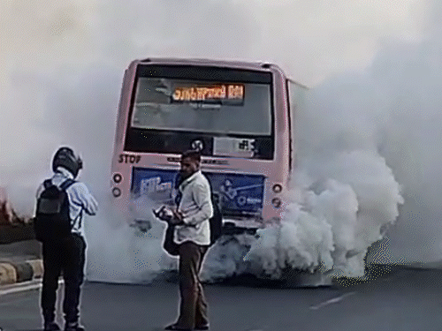 पुलिया पर बस को धुएं से घिरा देखकर लोग डर गए। ट्रैफिक पुलिस भी मौके पर पहुंची और पीछे से आ रहे वाहन चालकों को रोका। इससे लंबा जाम लग गया। शॉर्ट सर्किट माना जा रहा कारण