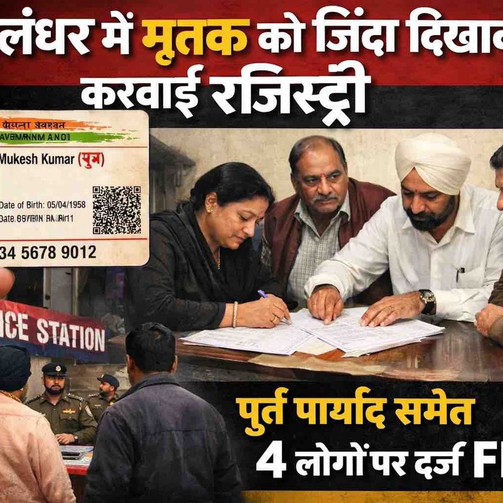 जालंधर में भू-माफिया के फर्जीवाड़े पर बड़ी कार्रवाई की गई है। जालसाजों ने एक मृत व्यक्ति को जीवित दिखाकर उसकी 17 मरले जमीन की रजिस्ट्री अपने नाम करवा ली। फर्जी दस्तावेजों के आधार पर जमीन का इंतकाल भी मंजूर करवा लिया गया था। मामला सामने आने के बाद सब-रजिस्ट्रार के बयानों के आधार पर थाना नवी बारादरी में केस दर्ज किया गया है। यह पूरा मामला गांव नंगल शामा स्थित 17 मरले के प्लॉट से जुड़ा है। पुलिस के अनुसार, जमना दास पुत्र स्वर्गीय धन्ना राम की मृत्यु वर्ष 2023 में हो चुकी थी। इसके बावजूद, 24 अक्टूबर 2024 को उनकी जगह एक अन्य व्यक्ति को सब-रजिस्ट्रार कार्यालय में पेश किया गया। आरोपियों ने पहले जमना दास के नाम पर फर्जी आधार कार्ड तैयार करवाया। इसी फर्जी आधार कार्ड का उपयोग कर 22 लाख 10 हजार रुपए में जमीन की रजिस्ट्री कांग्रेस के पूर्व पार्षद मंदीप कुमार के नाम करवा दी गई।