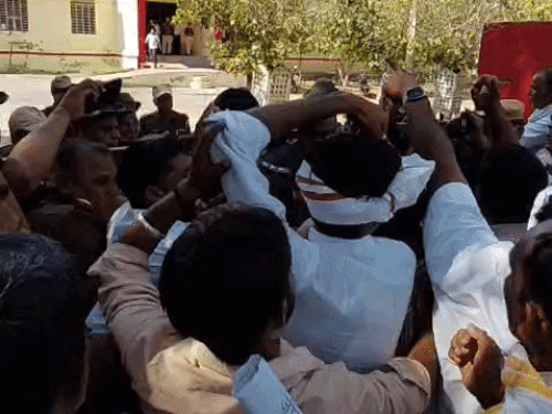 दौसा जिले के महवा क्षेत्र के कुतकपुर गांव में चारागाह भूमि पर 220 केवी जीएसएस बनाने के विरोध में ग्रामीण पिछले 168 दिनों से धरने पर बैठे हैं। गुरुवार को ग्रामीण गोवंश और भेड़-बकरियों के साथ पैदल कूच कर एसडीएम कार्यालय का घेराव किया। जहां लोगों की पुलिस से धक्का-मुक्की भी हुई। दरअसल, पैदल कूच हिण्डौन रोड स्थित चामुंडा माता मंदिर से शुरू हुआ। बड़ी संख्या में महिलाएं और पुरुष सरकार के खिलाफ नारेबाजी करते हुए एसडीएम कार्यालय पहुंचे। जहां लोगों ने एसडीएम मनीषा रेशम को ज्ञापन दिया। पूर्व जिला प्रमुख अजीत सिंह ने अल्टीमेटम दिया कि एक माह में आवंटन निरस्त नहीं हुआ तो विधायक जनसुनवाई केन्द्र के सामने धरना दिया जाएगा। वहीं दूसरी ओर रैली के कारण महवा-हिंडौन स्टेट हाईवे पर जाम लगा रहा, जहां पुलिस ने ट्रैफिक डायवर्ट किया। डिप्टी एसपी मनोहरलाल, थाना प्रभारी राजेन्द्र, संतचरण समेत पुलिस जाप्ता तैनात रहा। बता दें, सरकार ने पहले खोहरा मुल्ला-मातासूला क्षेत्र के लिए 220 केवी जीएसएस स्वीकृत किया था। विरोध के बाद इसे कुतकपुर की चारागाह भूमि में शिफ्ट किया गया, जिसका ग्रामीण विरोध कर रहे हैं। पहले देखें पैदल कूच की तस्वीरें…