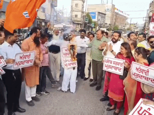चंडीगढ़ स्थित पंजाब भाजपा मुख्यालय के बाहर हुए हालिया ब्लास्ट के विरोध में आज भाजपा कार्यकर्ताओं का गुस्सा सड़कों पर फूटा। पंजाब भाजपा की और से आज लुधियाना के वेस्ट और सेंट्रल हलके में भाजपा नेताओं ने आतंकवाद का पुतला फूंका और प्रदेश की आम आदमी पार्टी (AAP) सरकार के खिलाफ जमकर नारेबाजी की। वेस्ट हलके में जीवन गुप्ता और सिद्धू ने किया प्रदर्शन लुधियाना वेस्ट हलके में भाजपा के वरिष्ठ नेता और पूर्व उम्मीदवार जीवन गुप्ता व सीनियर नेता विक्रम सिंह सिद्धू के नेतृत्व में प्रदर्शन किया गया। कार्यकर्ताओं ने आतंकवाद मुर्दाबाद और आम आदमी पार्टी सरकार मुर्दाबाद के नारे लगाते हुए कहा कि पंजाब में सुरक्षा व्यवस्था पूरी तरह चरमरा गई है। नेताओं ने आरोप लगाया कि राज्य में लगातार धमकियां मिल रही हैं, लेकिन सरकार राजनीति में व्यस्त है सेंट्रल हलके में कैशियर गुरुदेव शर्मा देबी ने घेरा वहीं सेंट्रल हलके में पंजाब भाजपा के कैशियर गुरुदेव शर्मा देबी की अगुवाई में आतंकवाद का पुतला फूंका गया। इस दौरान भारी संख्या में वार्ड प्रधान मंडल प्रधान और स्थानीय लोग मौजूद रहे। देबी ने मुख्यमंत्री भगवंत मान पर सीधा हमला बोलते हुए कहा पंजाब में कानून-व्यवस्था पूरी तरह फेल हो चुकी है। मुख्यमंत्री की ओर से इस गंभीर घटना पर अब तक कोई ठोस बयान या कार्रवाई न होना उनकी घटिया राजनीति और नाकामी को दर्शाता है। भाजपा कार्यकर्ताओं ने स्पष्ट चेतावनी दी कि यदि पंजाब में शांति भंग करने वाली ताकतों पर लगाम नहीं कसी गई तो आने वाले दिनों में आंदोलन को और तेज किया जाएगा। प्रदर्शन के दौरान कार्यकर्ताओं ने संकल्प लिया कि वे पंजाब की भाईचारक सांझ को किसी भी कीमत पर टूटने नहीं देंगे।