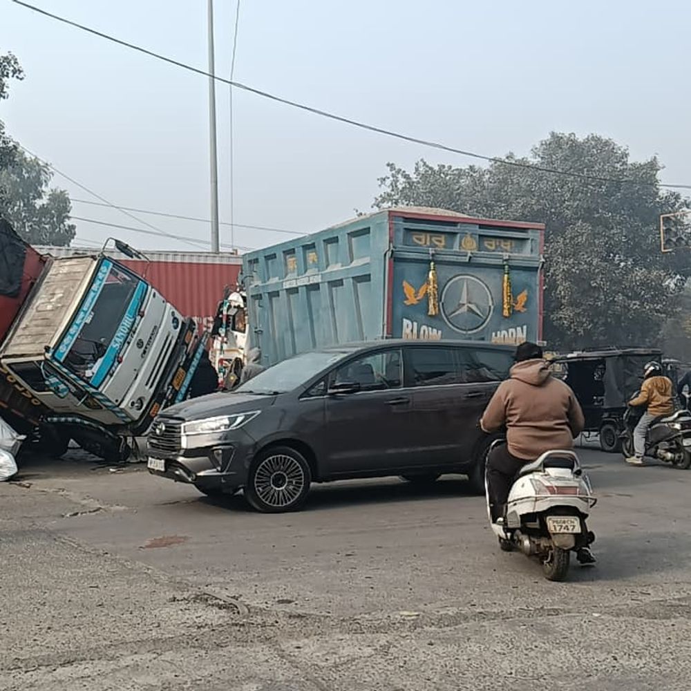 भास्कर न्यूज | जालंधर घने कोहरे का असर अब सड़क हादसों के रूप में सामने आने लगा है। रविवार तड़के पटेल चौक के पास जीरो विजिबिलिटी के चलते दो टिप्परों के बीच भीषण टक्कर हो गई। हादसा थाना डिवीजन नंबर-2 के ठीक सामने हुआ, जहां टक्कर के बाद एक भारी वाहन अनियंत्रित होकर सड़क पर ही पलट गया। जानकारी के अनुसार यह दुर्घटना सुबह करीब 5 बजे हुई, जब पूरा इलाका घने कोहरे की चादर में लिपटा हुआ था। एक टिप्पर पटेल चौक की ओर से आ रहा था, जबकि दूसरा टिप्पर मुड़ रहा था। कम विजिबिलिटी के कारण दोनों वाहन चालक एक-दूसरे को देख नहीं सके और जोरदार टक्कर हो गई। गनीमत यह रही कि इस भीषण हादसे में कोई जानी नुकसान नहीं हुआ। टक्कर के बाद मौके पर अफरा-तफरी मच गई। राहगीरों और पुलिस की तत्परता से दोनों चालकों को सुरक्षित बाहर निकालकर सिविल अस्पताल पहुंचाया गया। डॉक्टरों के मुताबिक चालकों को मामूली चोटें आई थीं और प्राथमिक उपचार के बाद उन्हें छुट्टी दे दी गई। बीच सड़क पर टिप्पर पलटने से कुछ समय के लिए यातायात पूरी तरह बाधित रहा। थाना डिवीजन नंबर-2 की पुलिस ने क्रेन की मदद से वाहनों को सड़क से हटवाकर यातायात सुचारु कराया। प्रशासन ने वाहन चालकों से अपील की है कि कोहरे के दौरान वाहन धीमी गति से चलाएं, फॉग लाइट्स का प्रयोग करें और सुरक्षित दूरी बनाए रखें।
