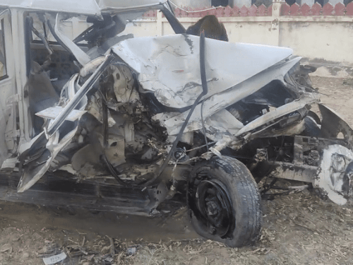 बीकानेर के नापासर थाना क्षेत्र में भीषण सड़क हादसे में बोलेरो सवार एक व्यक्ति की दर्दनाक मौत हो गई, जबकि तीन अन्य गंभीर रूप से घायल हो गए। मिनी ट्रक की टक्कर से ड्राइवर साइड से पूरी तरह चिपक गई। बोलेरो सवार बीकानेर से एक शादी समारोह में शामिल होकर गुसाईसर बड़ा (श्री डूंगरगढ़) लौट रहे थे। हादसा राष्ट्रीय राजमार्ग-11 जयपुर रोड पर रायसर के पास शुक्रवार की शाम को हुआ। जानकारी के अनुसार- बोलेरो में तीन पुरुष और एक महिला सवार थी, जो जयपुर की ओर से आ रहे थे। इसी दौरान एक मिनी ट्रक ने बोलेरो को तेज रफ्तार में टक्कर मार दी। हादसे में लालचंद पुत्र प्रहलाद राम सारस्वत(45) निवासी गुसाईसर बड़ा की मौत हो गई। इसके अलावा दो पुरुष और एक महिला गंभीर रूप से घायल हो गई। उन्हें बीकानेर ट्रॉमा सेंटर से प्राथमिक इलाज के बाद जयपुर रेफर किया गया है। सूचना पर नापासर थानाधिकारी ने मौके पर नापासर थाने के एएसआई एवं पुलिस जाप्ते को भेजा। एएसआई और पुलिस जवानों ने क्षतिग्रस्त वाहनों को सड़क किनारे करवाकर यातायात सुचारू कराया। हालांकि हादसे को लेकर अब तक किसी भी प्रकार की कोई रिपोर्ट दर्ज नहीं हुई है। कारणों की जांच जारी है। टक्कर इतनी जोरदार थी कि बोलेरो आगे से और ड्राइवर साइड से बुरी तरह क्षतिग्रस्त हो गई, वहीं मिनी ट्रक पलट गया, जिसे क्रेन की मदद से सीधा करवाया गया। कंटेंट : बसंत स्वामी, नापासर