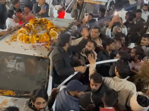 नागौर सांसद हनुमान बेनीवाल 2000 गाड़ियों के काफिले के साथ जयपुर की ओर रवाना हुए हैं। सांसद अपने समर्थकों के साथ हाईवे और रेलवे ट्रैक जाम करने निकले थे। हाईवे पर पहुंचने से पहले काफिला जयपुर की तरफ मुड़ गया। रात साढ़े नौ बजे काफिला नागौर जिले के अंतिम गांव बाड़ी घाटी में टोल के पास हाईवे के किनारे रुक गया। यहां रात 11:30 अजमेर रेंज आईजी राजेंद्र सिंह, नागौर जिला कलेक्टर अरुण कुमार पुरोहित और एसपी मृदुल कच्छावा पहुंचे। बेनीवाल को वार्ता के लिए पास के ही एक होटल में बुलाया गया। इससे पहले बेनीवाल मंगलवार को रियांबड़ी में 8 दिन से चल रहे किसानों के आंदोलन में शामिल हुए। उन्होंने प्रशासन को किसानों की मांगों को मानने का 4 बजे तक का अल्टीमेटम दिया। सुनवाई नहीं होने पर 11 किमी दूर NH 59 नागौर-अजमेर हाईवे की ओर निकल पड़े। प्रशासन ने पादुकलां में ही हाईवे पर बेरिकेडिंग कर रखी थी। मौके पर भारी पुलिस जाब्ता तैनात था। यह देखते हुए सांसद बेनीवाल का काफिला जयपुर की ओर मुड़ गया। इससे पहले बेनीवाल ने कहा- बजरी माफिया का तो मैंने इलाज कर दिया, लेकिन जनता ने RLP का इलाज कर दिया, वोट एक नहीं दिया। ये किया था पिछली बार राजस्थान की जनता ने। अगर समय रहते वोट डालती और आज मेरे 5, 7 या 10 विधायक होते, तो मुख्यमंत्री भजनलाल शर्मा या राज्यपाल के अभिभाषण की इतनी हिम्मत नहीं होती। मैं उस अभिभाषण को फाड़कर फेंक देता, जैसा मैंने पहले 11 बार किया है। बेनीवाल ने रैली शुरू होने से पहले युवाओं को हिदायत भी दी। कहा- मेरे से आगे निकलने की कोशिश मत करना। बुजुर्ग पीछे चलेंगे और युवा आगे चलेंगे। उन्होंने कहा- कलेक्टर-अधिकारी कमरों में छिप रहे हैं। बार-बार पेशाब करने जा रहे हैं। पहले देखिए किसान आंदोलन से जुड़ी तस्वीरें… पढ़ें ये खबर भी… 200 ट्रैक्टरों के साथ कलेक्ट्रेट घेरने निकले किसान:बोले- आज हम प्रशासन को झुकाएंगे; 4 घंटे चली वार्ता में बनी सहमति