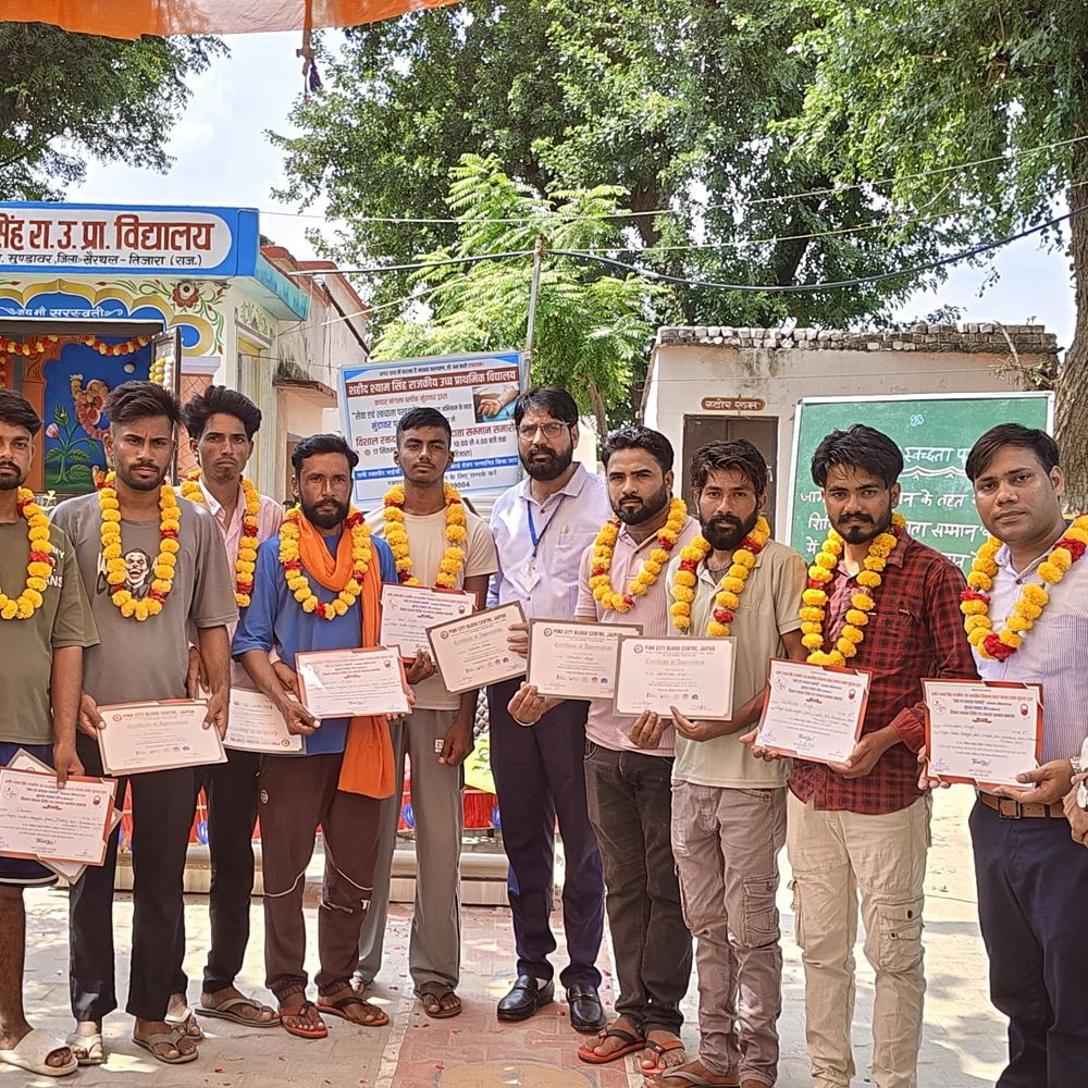 सेवा एवं स्वच्छता पखवाड़े जागरूकता अभियान के तहत मुंडावर ब्लॉक के शहीद श्याम सिंह राजकीय उच्च प्राथमिक विद्यालय, कादर नंगला में बुधवार को रक्तदान शिविर का आयोजन किया गया। इस शिविर का आयोजन मुंडावर पत्रकार संघ के सौजन्य से किया गया, जिसमें ग्रामीणों और युवाओं ने बढ़-चढ़कर भागीदारी निभाई। शिविर में बड़ी संख्या में महिलाओं और पुरुषों ने स्वेच्छा से रक्तदान किया। रक्तदान शिविर का शुभारंभ विद्यालय स्टाफ द्वारा फीता काटकर किया गया। इस दौरान कुल 74 यूनिट ब्लड एकत्रित हुआ। विद्यालय की अध्यापिकाएँ आशा रानी और मनीषा तथा अध्यापक आदित्य शर्मा ने अपने जीवन का पहला रक्तदान किया। वहीं प्रधानाध्यापक सुमित यादव ने 23वीं बार रक्तदान कर सभी को प्रेरित किया। मुख्य अतिथि पीईईओ मनोज कुमार बेनीवाल ने कहा कि विद्यालय के प्रधानाध्यापक सुमित यादव समय-समय पर समाजहित में सराहनीय कार्य करते रहे हैं। उनके इन कार्यों के लिए उन्हें जिला और राज्य स्तर पर सम्मानित भी किया जा चुका है। उन्होंने कहा कि विद्यालय परिसर में रक्तदान शिविर आयोजित कर समाज को एक सशक्त संदेश देने का कार्य किया गया है। शिविर के दौरान विद्यालय के अध्यापक सुदेश कुमार ने प्रत्येक कक्षा के विद्यार्थियों को रक्तदान कक्ष में ले जाकर बच्चों को रक्तदान का महत्व समझाया। विद्यार्थियों ने प्रत्यक्ष रूप से रक्तदान की प्रक्रिया को देखकर गहरी रुचि दिखाई और समाज सेवा के इस कार्य को आगे बढ़ाने का संकल्प लिया। वहीं ब्लड बैंक टीम की सदस्य गिरीजा सैनी ने बच्चों को रक्तदान की प्रक्रिया के बारे में विस्तार से जानकारी दी। उन्होंने बताया कि नियमित रक्तदान न केवल जरूरतमंदों के जीवन को बचाता है बल्कि यह रक्तदाता के स्वास्थ्य के लिए भी लाभकारी है। शिविर में उत्साहपूर्ण वातावरण देखने को मिला। ग्रामीणों में समाजसेवी भावना साफ झलक रही थी। इस मौके पर भगवान सिंह,पंच सोनासिंह, महेंद्र सिंह, सोनू सिंह, ललिता मेहरा, अंजु बाई, पुनम यादव, सोनू मिश्रा सहित बड़ी संख्या में ग्रामीण मौजूद रहे और रक्तदान के महत्व को समझते हुए स्वेच्छा से रक्तदान किया।