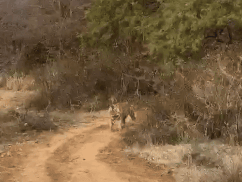 अलवर के सरिस्का जंगल में युवराज टाइगर ST-21 की शानदार साइटिंग हुई। टाइगर सफारी ट्रैक पर टूरिस्ट की जिप्सी के एकदम सामने आ गया। वहीं पेड़ पर एक लेपर्ड भी नजर आया है। टूरिस्ट की जिप्सी की आवाज सुनते ही वो फुर्ती से पेड़ से उतरकर नीचे आ गया। मानो अपने शिकार की तलाश में भाग रहा है। टाइगर साइटिंग और लेपर्ड को देखकर टूरिस्ट खुश हुए और कैमरे से उनका वीडियो भी बनाया। युवराज टाइगर ST-21 और लेपर्ड की फोटो में देखिए- टूरिस्ट के सामने युवराज टाइगर सरिस्का में गुरुवार शाम की पारी के दौरान करीब 50 पर्यटक 6 जिप्सियों में सवार होकर जंगल सफारी पर निकले थे। कालां कुआं इलाके में पहुंचते ही सामने से युवराज टाइगर ST-21 झाड़ियों से निकलकर आता नजर आया। टाइगर टूरिस्ट की जिप्सी के सामने सफारी ट्रैक पर आ गया।टाइगर को देखते ही गाइड ने जिप्सियों को रोक दिया। टाइगर जैसे-जैसे गाड़ियों के करीब पहुंचा, सुरक्षा को ध्यान में रखते हुए जिप्सियों को थोड़ा पीछे लेना पड़ा। इस टूरिस्ट ने टाइगर का वीडियो बनाया। पेड़ से फुर्ती से उतरा लेपर्ड इसके बाद टूरिस्ट घानका इलाके की तरफ गया। वहां एक पेड़ के ऊपर लेपर्ड दिखाई दिया। जिप्सियों की आवाज सुनकर लेपर्ड फुर्ती से पेड़ से नीचे उतरा और तेजी से भाग गया। एक ही सफारी में टाइगर और लेपर्ड की शानदार साइटिंग से पर्यटक खुश हो गए। सरिस्का का जंगल एक बार फिर रोमांच से भर उठा।