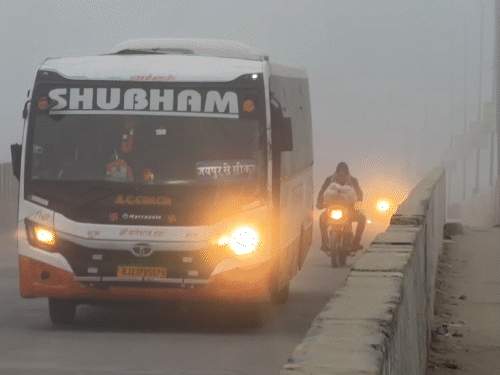 राजस्थान में आज (गुरुवार) 23 जिलों में कोहरे और शीतलहर की चेतावनी जारी की गई है। सीकर, झुंझुनूं, जयपुर समेत 10 जिलों के लिए ऑरेंज अलर्ट, जबकि श्रीगंगानगर, हनुमानगढ़, बीकानेर समेत 13 जिलों में येलो अलर्ट है। सर्दी के चलते प्रदेश के 26 जिलों में गुरुवार को भी स्कूलों में छुट्टी रहेगी। जोधपुर के सरकारी और प्राइवेट स्कूलों का समय सुबह 10 से शाम 4 बजे तक कर दिया गया है। प्रदेश में दिन में भी रात जैसी सर्दी का अनुभव हो रहा है। बुधवार को श्रीगंगानगर में दिन की सर्दी चित्तौड़गढ़ और डूंगरपुर में पड़ने वाली रात की सर्दी के समान रही। राजधानी जयपुर भी शेखावाटी के फतेहपुर (सीकर), पिलानी (झुंझुनूं) और चूरू से ज्यादा ठंडा रहा। मौसम विशेषज्ञों ने राज्य में अगले 4-5 दिनों तक इसी तरह की कड़ाके की सर्दी का दौर जारी रहने की संभावना जताई है। मौसम केन्द्र जयपुर की रिपोर्ट के अनुसार, बुधवार को श्रीगंगानगर में दोपहर का अधिकतम तापमान 10.4 डिग्री सेल्सियस दर्ज किया गया, जो चित्तौड़गढ़ के रात के न्यूनतम तापमान 10.2 डिग्री सेल्सियस और डूंगरपुर के न्यूनतम तापमान 10.6 डिग्री सेल्सियस के समान था। पिछले 24 घंटों के दौरान बीकानेर, जयपुर, भरतपुर, अजमेर, कोटा के सभी जिलों और उदयपुर, जोधपुर संभाग के कुछ जिलों में घना कोहरा छाया रहा। जयपुर और कोटा संभाग के कुछ इलाकों में कोहरा इतना घना था कि सुबह विजिबिलिटी 50 मीटर से भी कम दर्ज की गई। सुबह से लेकर देर शाम तक कोहरे के बीच कई जिलों में तेज सर्द हवाएं चलीं। श्रीगंगानगर के अलावा बीकानेर में बुधवार को अधिकतम तापमान 13.5 डिग्री सेल्सियस, बारां में 14.3, कोटा में 14.9, भीलवाड़ा और चूरू में 15.5, करौली में 15.6, झुंझुनूं में 16.6, सिरोही में 16.1, पिलानी में 16.7, अलवर में 16.8 और वनस्थली (टोंक) में 16.2 डिग्री सेल्सियस दर्ज किया गया। इन सभी शहरों में बुधवार को कोल्ड-डे की स्थिति रही।