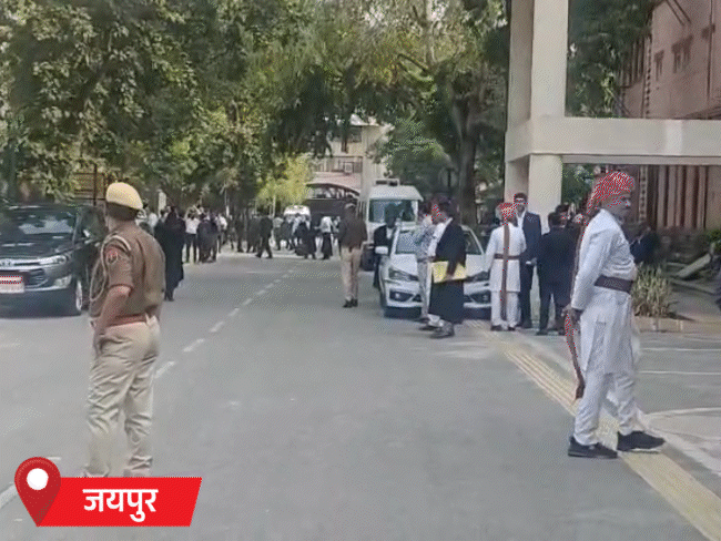 राजस्थान हाईकोर्ट जोधपुर और जयपुर बेंच को एक बार फिर बम से उड़ाने की धमकी मिली। हाईकोर्ट प्रशासन को आज सुबह एक धमकी भरा ईमेल मिला, जिसमें परिसर को बम से उड़ाने की धमकी दी गई। सूचना पर पुलिस और डॉग स्क्वायड की टीमें मौके पर पहुंची। कोर्ट रूम सहित पूरी बिल्डिंग को खाली करवाया गया। जोधपुर डीसीपी (पश्चिम) विनीत बंसल की अगुवाई में पुलिस टीम तलाशी ली गई। करीब ढाई घंटे तक तलाशी अभियान चला। इसके बाद सवा ग्यारह बजे से जजों के कोर्ट पहुंचने का सिलसिला शुरू हो गया। और साढ़े ग्यारह बजे से कोर्ट्स में सुनवाई शुरू कर दी गई। बम डिस्पोजल स्क्वायड और डॉग स्क्वायड की टीम चप्पे-चप्पे को खंगाल रही हैं ताकि किसी भी संदिग्ध वस्तु का पता लगाया जा सकें। जयपुर बेंच में भी तलाशी ली गई, जिसमें कुछ नहीं मिला। राजस्थान हाईकोर्ट जोधपुर और जयपुर बेंच की PHOTOS चेंकिंग के बाद ही दे रहे एंट्री सर्च के बाद भी बिना परिचय-पत्र के किसी भी वकील को भीतर प्रवेश नहीं दिया जा रहा है। वहीं, विभिन्न मामलों में अपनी सुनवाई के लिए पहुंच रहे परिवादियों को भी कोर्ट के गेट नंबर 1 से पास बनवाने के बाद ही प्रवेश दिया जा रहा है। इनके अलावा किसी भी बाहरी व्यक्ति को प्रवेश की अनुमति नहीं दी जा रही है। कोर्ट का कामकाज सुबह 11:30 बजे से शुरू हो गया है। इसके साथ ही सुरक्षा व्यवस्था को चाक-चौबंद करने के लिए निम्नलिखित निर्देश लागू किए गए है- आईडी कार्ड अनिवार्य: बिना वैध कार्ड और पहचान पत्र के किसी भी व्यक्ति को परिसर में प्रवेश की अनुमति नहीं दी जा रही है। सहयोग की अपील: हाईकोर्ट प्रशासन और पुलिस ने वकील संगठनों के पदाधिकारियों से जांच प्रक्रिया में पूर्ण सहयोग करने की अपील की है। प्रवेश पर नियंत्रण: गेटों पर चेकिंग बढ़ा दी गई है और हर संदिग्ध गतिविधि पर पैनी नजर रखी जा रही है। लगातार मिल रही धमकियां गौरतलब है कि पिछले कुछ महीनों में राजस्थान हाईकोर्ट को इस तरह के कई धमकी भरे ईमेल मिल चुके हैं, जो जांच के दायरे में हैं। इससे पहले 6 फरवरी 2026 को भी इसी तरह की धमकी के बाद जयपुर और जोधपुर दोनों परिसरों को खाली कराया गया था। बार-बार मिल रही इन धमकियों के कारण कोर्ट की न्यायिक कार्यवाही बुरी तरह प्रभावित हो रही है, जिससे वकीलों और आम जनता में रोष और भय का माहौल है। —