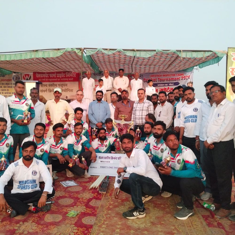 हनुमानगढ़ की ग्राम पंचायत भगवान स्थित स्पोर्ट्स क्लब परिसर में आयोजित पांच दिवसीय राज्य स्तरीय चतुर्थ पशुधन निरीक्षक संवर्ग क्रिकेट प्रतियोगिता बुधवार को संपन्न हो गई। इस प्रतियोगिता में कुचामन टीम विजेता रही, जबकि उदयपुर उपविजेता बनी। उदयपुर के जीत मीणा को मैन ऑफ द सीरीज चुना गया। यह डे नाईट प्रतियोगिता थी, जिसमें प्रदेशभर की कुल 28 टीमों ने हिस्सा लिया। ग्रामीण क्षेत्र में राज्य स्तर के इस मुकाबले को देखने के लिए लोगों में काफी उत्साह देखा गया। फाइनल मुकाबला कुचामन और उदयपुर के बीच खेला गया, जिसमें कुचामन ने शानदार प्रदर्शन करते हुए खिताब अपने नाम किया। विजेता टीम कुचामन को 81 हजार रुपए का चेक और ट्रॉफी प्रदान की गई। उपविजेता उदयपुर को 51 हजार रुपए और ट्रॉफी मिली, जबकि तीसरे स्थान पर रही जयपुर पिंक पैंथर टीम को 31 हजार रुपए व ट्रॉफी देकर सम्मानित किया गया। समापन समारोह में विधायक प्रतिनिधि सुमित चाचाण, राजेश कंदोई और पशुपालन विभाग के निदेशक डॉ. आनंद स्वरूप सेन मुख्य अतिथि के रूप में उपस्थित रहे। विशिष्ट अतिथियों में बृजलाल सिहाग (सेवानिवृत्त एईएन), डॉ. महावीर सहारण, डॉ. दिनेश जगिड़ और डॉ. रमेश चंद्र शर्मा शामिल थे। अतिथियों ने आयोजक पवन चौहान और उनकी टीम की सराहना की। उन्होंने कहा कि ग्रामीण क्षेत्र में इतनी बड़ी प्रतियोगिता का आयोजन एक सराहनीय पहल है। अतिथियों ने यह भी बताया कि खेल युवाओं को नशे से दूर रखने का एक प्रभावी माध्यम है। कार्यक्रम में खिलाड़ियों का उत्साहवर्धन किया गया और ग्रामवासियों का आभार व्यक्त किया गया।