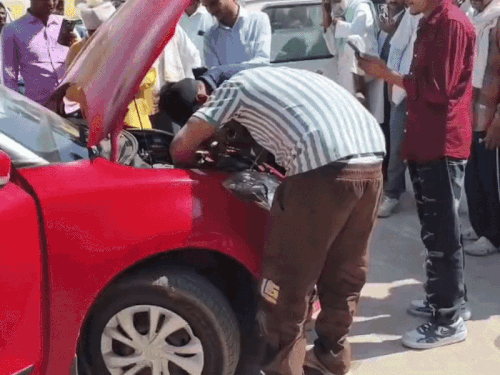 अलवर के सरकारी हॉस्पिटल परिसर में खड़ी कार के इंजन में सांप घुस गया। अस्पताल परिसर से गुजर रहे एक व्यक्ति की नजर कार के बोनट के पास लटकती सांप की पूंछ पर पड़ी। इसके बाद तुरंत रेस्क्यू टीम को सूचना दी गई। सूचना मिलने के करीब 20 मिनट बाद रेस्क्यू टीम मौके पर पहुंची। कार का बोनट खोलकर सांप को निकालने की कोशिश शुरू की। इस दौरान अस्पताल परिसर में लोगों की भीड़ जमा हो गई और कई लोग अपने मोबाइल से वीडियो बनाने लगे। देखें PHOTOS… रेस्क्यू के दौरान कोबरा कभी ऊपर तो कभी नीचे की तरफ निकलने की कोशिश करता रहा। मौके पर मौजूद लोगों ने टीम को बताया कि सांप नीचे की तरफ से निकल रहा है। इसके बाद टीम के एक सदस्य ने नीचे से और दूसरे ने ऊपर से प्रयास किया। करीब 20 मिनट की कड़ी मशक्कत के बाद टीम ने कोबरा की पूंछ पकड़कर उसे सुरक्षित बाहर निकाल लिया। रेस्क्यू के दौरान करीब 50 लोग मौके पर मौजूद रहे। बाद में टीम ने सांप को कट्टे में डालकर सुरक्षित जंगल में छोड़ दिया, जिससे अस्पताल परिसर में लोगों ने राहत की सांस ली।