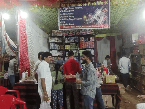 दीपावली के फेस्टिवल सीजन पर सवाई माधोपुर शहर में रौनक बढ़ गई है। सवाई माधोपुर में पटाखों का बाजार सज चुके है। इस बार पुराने शहर के लटिया नाले में लगने वाला पारंपरिक पटाखा बाजार गोपालजी के बाग में लगाया गया है, जहां तरह-तरह के आकर्षक पटाखे लोगों का ध्यान खींच रहे हैं। AK-47, बटरफ्लाई, ड्रोन, पानी बम बने आकर्षक का केंद्र
