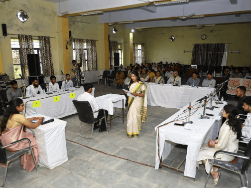 कार्यक्रम का संचालन समन्वयक श्वेता के मार्गदर्शन में हुआ। निर्णायक मंडल में प्रो. योगेंद्र कुमार, डॉ. कौशल कुमार सैन, महेंद्र प्रताप सिंह, डॉ. वी. डी. पाराशर और प्रो. सरोज देवी शामिल थे।