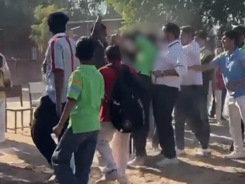 चूरू में 11वीं कक्षा के छात्र को प्रिंसिपल और 5 टीचर्स ने मिलकर बुरी तरह पीटा। बच्चे ने घर जाकर परिजनों को बताया। रात में बच्चे को खून की उल्टियां हुई। सुबह परिजन स्कूल पहुंचे तो स्टाफ ने बात करने से मना कर दिया। घटना का वीडियो सामने आया है, जिसमें दो टीचर्स बच्चे को थप्पड़ और पीठ पर मारते हुए दिखाई दे रहे हैं। प्रिंसिपल और अन्य टीचर बच्चे को पकड़े हुए नजर आ रहे हैं। घटना बुधवार दोपहर 2.30 बजे राजगढ़ के लॉर्ड्स इंटरनेशनल स्कूल की है। बच्चे के पिता ने गुरुवार को स्कूल के प्रिसिंपल समेत 6 स्टाफ के खिलाफ राजगढ़ थाने में रिपोर्ट दी है। राजगढ़ के सिद्धमुख रोड निवासी दीपचंद ने रिपोर्ट में बताया- मेरा 15 वर्षीय बेटा लॉर्ड्स इंटरनेशनल स्कूल में पढ़ता है। 24 दिसंबर बुधवार को करीब 2.30 बजे स्कूल के प्रिंसिपल समेत 6 टीचर्स ने बहुत बुरी तरह पीटा। बच्चे ने घर आकर बताया था। गुरुवार को मैं स्कूल में गया तो छुट्टी थी, लेकिन प्रधानाचार्य और कुछ स्कूल स्टाफ मिला। हमने घटना के बारे में पूछा तो उन्होंने कोई सहयोग नहीं किया, इसी दौरान घटना का वीडियो भी हमें मिला। जिसके बाद हम थाने पहुंचे। प्रिंसिपल आरपी शर्मा ने बच्चे को पीटने की शुरुआत की। उन्होंने कम से कम 10-15 थप्पड़ मारे। वाइस प्रिंसिपल नरेंद्र ने घुटनों, कोहनी और थप्पड़ मारे। टीचर सतीश ने बच्चे को पकड़ रखा था। इसके अलावा पंकज, दिनेश और अन्य स्टाफ इस घटना में शामिल थे। रंजिश के कारण बच्चे को पीटा-पिता दीपचंद ने बताया- किसी रंजिश के चलते मेरे बेटे के साथ इन लोगों ने मारपीट की है। इस तरह के लोग शिक्षक नहीं हो सकते। इतना टॉर्चर तो कोई पशु को भी नहीं कर सकता। रोपी टीचर्स को सख्त सजा दिलाई जाए। ये स्कूल अध्ययन का केंद्र नहीं है। इसकी मान्यता रद्द होनी चाहिए। यहां सिर्फ गुंडागर्दी चल रही है। मुझे स्कूल प्रशासन ने बिल्कुल भी सपोर्ट नहीं किया है। बच्चों में झगड़ा हुआ था, उन्हें समझाने गया था-प्रिंसिपल मामले में प्रिंसिपल आरपी शर्मा ने कहा- स्कूल में कबड्डी के खेल चल रहे थे, इसी बीच बच्चों में झगड़ा हो गया था। वे बच्चों को समझाकर अलग करने गए थे। वीडियो में मारपीट करते दिखने के सवाल पर प्रिंसिपल ने कुछ भी कहने से इनकार कर दिया है। पुलिस ने बच्चे का मेडिकल करवाया थाना अधिकारी राजेश सिहाग ने बताया- बच्चे के परिजनों ने रिपोर्ट दी है। बच्चे का मेडिकल करवाया गया है। नियमानुसार कानूनी कार्रवाई करेंगे। CBEO सुमन जाखड़ ने कहा- मेरे पास बच्चे के परिजन और स्कूल की तरफ से अभी कोई जानकारी नहीं मिली है। जानकारी लेकर कार्रवाई करेंगे।