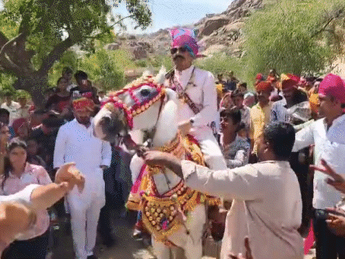 राजस्थान मूल के IPS अफसर व संभल (यूपी) एसपी कृष्ण कुमार (केके) बिश्नोई और बरेली SP अंशिका वर्मा की आज जोधपुर में शादी होगी। धोरीमन्ना (बाड़मेर) में केके बिश्नोई के घर से दोपहर 2 बजे बारात जोधपुर के लिए निकली। शेरवानी पहने और काला चश्मा लगाए केके बिश्नोई ने हाथ में तलवार थाम रखी थी। वे जब घोड़ी पर बैठे तो ढोल-नगाड़ों की थाप पर घोड़ी भी नाचने लगी। इससे पहले, मां ने केके बिश्नोई को तिलक लगाकर शादी से जुड़ी रस्में निभाई। इस दौरान केके बिश्नोई भावुक हो गए। अंशिका प्रयागराज (यूपी) के रहने वाली हैं। जोधपुर के अजीत भवन में शादी की रस्मों में यूपी और राजस्थान, दोनों राज्यों की संस्कृति देखने को मिलेगी। 30 मार्च को लहरिया रिसॉर्ट में रिसेप्शन होगा। इसमें कई वीआईपी मेहमानों के पहुंचने की संभावना है। यूपी के सीएम योगी आदित्यनाथ को भी शादी का निमंत्रण दिया है। शादी की थीम ‘कृष्णांशिका’ (The KrishnAnshika) रखी गई है। देखिए, शादी की रस्मों से जुड़ी PHOTOS… 26 मार्च को हुई थी सगाई धोरीमन्ना में 26 मार्च को सगाई और 27 मार्च को हल्दी की रस्म हुई थी। इसके बाद ‘बिंदौली’ फंक्शन हुआ। इसमें केके बिश्नोई अपने पिता के साथ नाचते नजर आए थे। तीन साल पहले मुलाकात, दोस्ती बदली प्यार में केके बिश्नोई और अंशिका वर्मा की तीन साल पहले गोरखपुर में मुलाकात हुई थी। समय के साथ यह दोस्ती प्यार में बदल गई। इसके बाद दोनों अफसरों ने अपने-अपने परिवार से बात की। परिवारों ने बैठकर शादी की बात फाइनल की। हालांकि, दोनों ने कभी भी अपनी लव लाइफ को लेकर कोई पोस्ट नहीं की। … राजस्थान के IPS की वेडिंग सेरेमनी की ये खबरें भी पढ़िए… हल्दी में पिता के साथ IPS बिश्नोई ने डांस किया:SP अंशिका के साथ राजस्थान में 29 मार्च को होगी शादी IPS कृष्ण कुमार (KK) बिश्नोई ने शुक्रवार को बाड़मेर के धोरीमन्ना में हल्दी के दौरान पिता के साथ DJ पर डांस भी किया। इस दौरान कलाकारों ने ‘संभल SP कृष्ण विश्नोई को ठरको’ गाया। पूरी खबर पढ़िए राजस्थान मूल के IPS की बरेली SP से सगाई, मंगेतर को गोद में उठाकर किया डांस राजस्थान मूल के IPS अफसर और संभल (यूपी) एसपी कृष्ण कुमार (केके) बिश्नोई और बरेली एसपी अंशिका वर्मा की सगाई हो गई। संभल में 26 मार्च को हुई सेरेमनी में दोनों ने स्टेज पर डांस किया। पूरी खबर पढ़िए