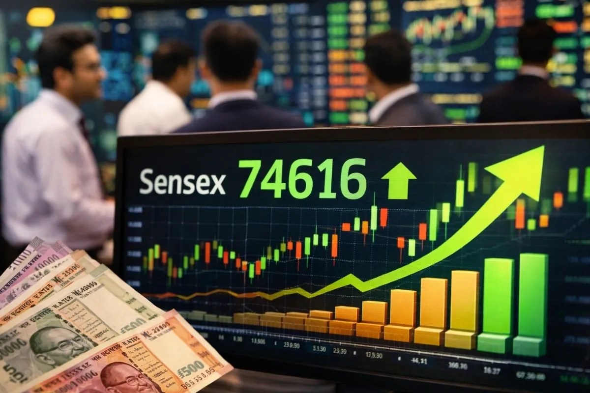 Stock Market: भारतीय शेयर बाजार आज बढ़त के साथ बंद हुआ है। बॉम्बे स्टॉक एक्सचेंज का सूचकांक सेंसेक्स आज 0.69 फीसदी या 509 अंक की बढ़त के साथ 74,616 पर बंद हुआ। इस तरह सेंसेक्स में लगातार चौथे दिन तेजी दर्ज हुई है। वहीं, नेशनल स्टॉक एक्सचेंज का सूचकांक निफ्टी 0.68 फीसदी या 155 अंक की बढ़त लेकर 23,123 पर बंद हुआ। सेंसेक्स के 30 शेयरों में से 19 शेयर हरे निशान पर और 11 शेयर लाल निशान पर बंद हुए।