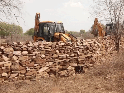 कोटा विकास प्राधिकरण (KDA) ने आज दूसरे दिन बभी अवैध अतिक्रमण के खिलाफ कार्रवाई की है। टीम ने 1031 बीघा जमीन से अवैध अतिक्रमण हटाया है। जिसकी बाजार कीमत करीब 100 करोड़ से ऊपर बताई गई है। यहां लोगों ने पत्थर कोट, पक्की बाउंड्री, बाड़े, पक्का स्ट्रक्चर, मकान बना रखे थे। KDA की टीम ने जेसीबी की मदद से अतिक्रमण तोड़ा। कार्रवाई 8 घंटे तक चली। ये जमीन रीको को आवंटित की जा चुकी KDA ने मौके पर रीको कब्जा सम्भलाया। KDA तहसीलदार सुरेंद्र शर्मा ने बताया कि आयुक्त के निर्देश पर ग्राम रामपुरिया व पीली की खान में सुबह 8 बजे से दोपहर साढ़े 4 बजे तक कार्रवाई की गई। कार्रवाई में बूंदी जिले की तालेड़ा,बूंदी थाना, नमाना थाना पुलिस का जाब्ता मौजूद रहाबूंदी 1031 बीघा जमीन में स्थानीय लोगों ने कब्जा कर रखा था। जमीन पर पत्थर कोट, पक्के बाड़े, बाउंड्रीवाल बना रखे थे। ये क्षेत्र कोटा विकास प्राधिकरण में आने के बाद लोगों को नोटिस दिए गए थे। अभी भी लोगों को नोटिस देकर अतिक्रमण हटाने को कहा है। दरअसल KDA ने रीको को 431 करोड़ में साढ़े 3 हजार बीघा से ज्यादा जमीन बेची थी। इस जमीन पर स्थानीय लोगों ने कब्जा कर रखा था। KDA अब तक 2500 बीघा जमीन से अतिक्रमण हटवाकर रीको को कब्जा संभला चुका। बाकी जमीन को भी अतिक्रमण मुक्त कर रीको को कब्जा सौंपा जाएगा। कार्रवाई में तहसीलदार हिम्मत सिंह, ललित नागर,भू अभिलेख निरीक्षक मुरलीधर पारेता, हरीश कुमार गुप्ता, हरीशचंद्र प्रजापति, विवेकपाल,भवानी शंकर कारपेंटर, पटवारी राम निवास, अमित कुमार, हितेश माहेश्वरी,संदीप गोचर,रोहिणी महावर, सहित डीएसपी तालेड़ा राजेश टेलर, तालेड़ा, नमाना व बूंदी SHO समेत 150 लोग मौजूद रहे।
