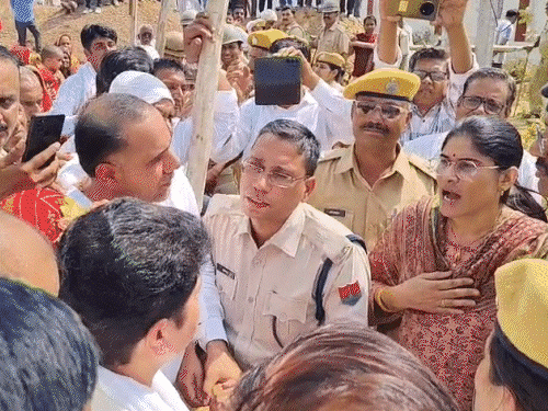 झुंझुनूं में रविवार को प्राथमिक स्वास्थ्य केंद्र (PHC) भवन के उद्घाटन को लेकर हंगामा हो गया। मंडावा से कांग्रेस विधायक रीटा चौधरी चुड़ैला गांव में PHC का उद्घाटन करने पहुंची थीं। जैसे ही वे मंच की ओर बढ़ीं, पुलिस और अफसरों ने बैरिकेडिंग कर उन्हें और उनके समर्थकों को रोक दिया। विधायक और SDM में बहस हो गई। इस दौरान पुलिस ने महिला सरपंच से धक्का-मुक्की भी की। विधायक ने ASP हेमंत सिंह से कहा- कल तक ऐसा क्या हो गया कि आपको इतनी बड़ी पुलिस फोर्स लगानी पड़ी? यह सरकारी बिल्डिंग है, कोई अपराध स्थल नहीं। आपने छावनी बना दी है। विधायक ने आरोप लगाया कि पुलिस ने टेंट उखाड़ दिए। कुर्सियां हटवा दीं। मुझे भवन के अंदर जाने से रोक दिया। मुझे धक्का-मुक्की कर बाहर निकाला गया। विधायक का प्रोटोकॉल चीफ सेक्रेटरी से ऊपर होता है, लेकिन मेरे साथ ऐसा व्यवहार किया गया, जैसे मैं कोई अपराधी हूं। मलसीसर एसडीएम सुमन देवी ने कहा- चिकित्सा विभाग से स्पष्ट निर्देश हैं कि जब तक भवन का पूरा हैंडओवर नहीं हो जाता, तब तक लोकार्पण नहीं किया जा सकता। इस बीच मौके पर शांति व्यवस्था बनाए रखने के लिए ASP, सीओ समेत 3 थानों का पुलिस जाब्ता तैनात किया गया। पहले देखिए… घटना से जुड़ी तस्वीरें विधायक बोलीं- हारे हुए नेताओं के दबाव में काम कर रहा प्रशासन