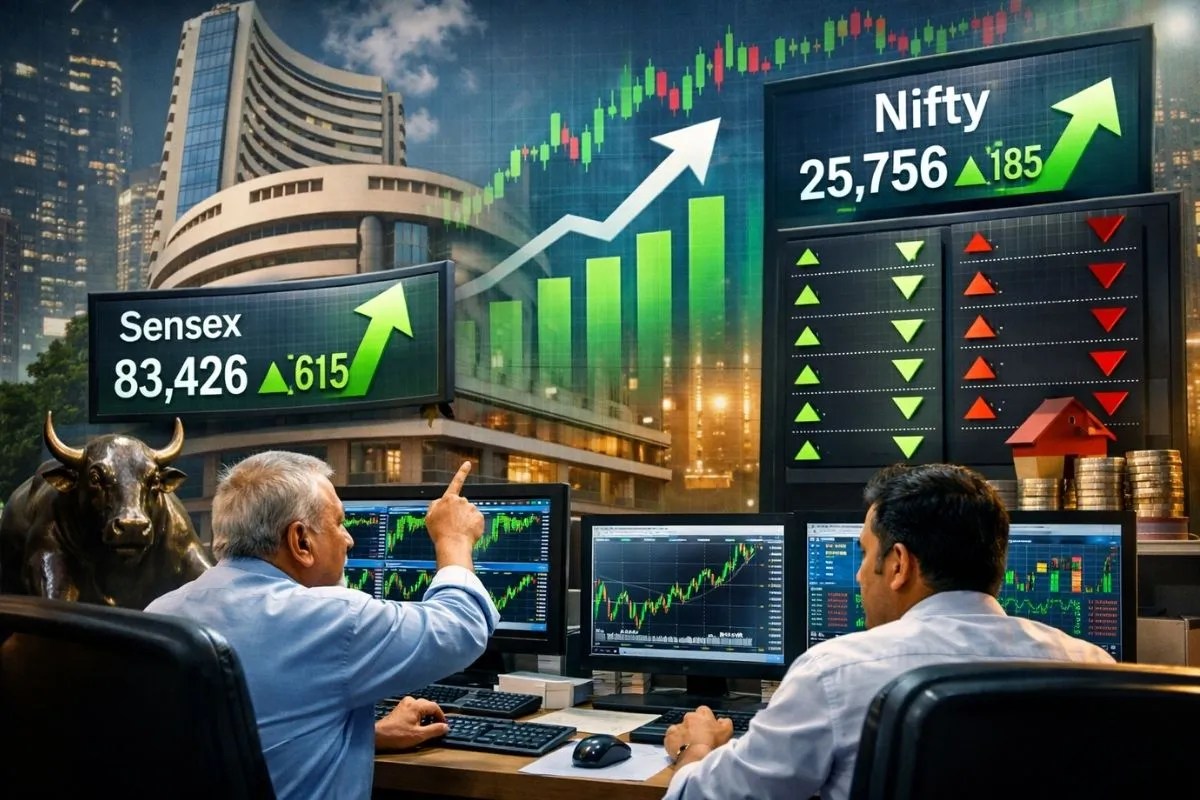 Share Market News: भारतीय शेयर बाजार में आज हफ्ते के पहले कारोबारी दिन सोमवार को अच्छी-खासी तेजी देखी जा रही है। ट्रंप टैरिफ के रद्द होने का असर आज बाजार पर देखने को मिल रहा है। बॉम्बे स्टॉक एक्सचेंज का सूचकांक सेंसेक्स आज शुरुआती कारोबार में 0.73 फीसदी या 615 अंक की बढ़त के साथ 83,426 पर ट्रेड करता दिखाई दिया। शुरुआती कारोबार में सेंसेक्स के 30 शेयरों में से 25 शेयर हरे निशान पर और 5 शेयर लाल निशान पर ट्रेड करते दिखे। उधर नेशनल स्टॉक एक्सचेंज का सूचकांक निफ्टी इस समय 0.72 फीसदी या 185 अंक की बढ़त के साथ 25,756 पर ट्रेड करता दिखा।